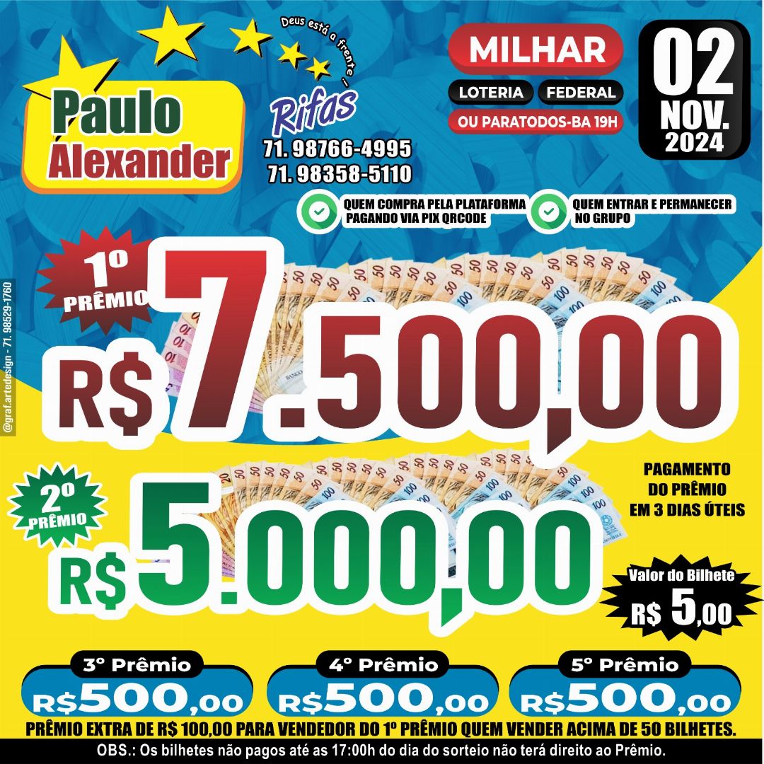 SORTEIO: 02/11/24 - PARATODOS - 19h